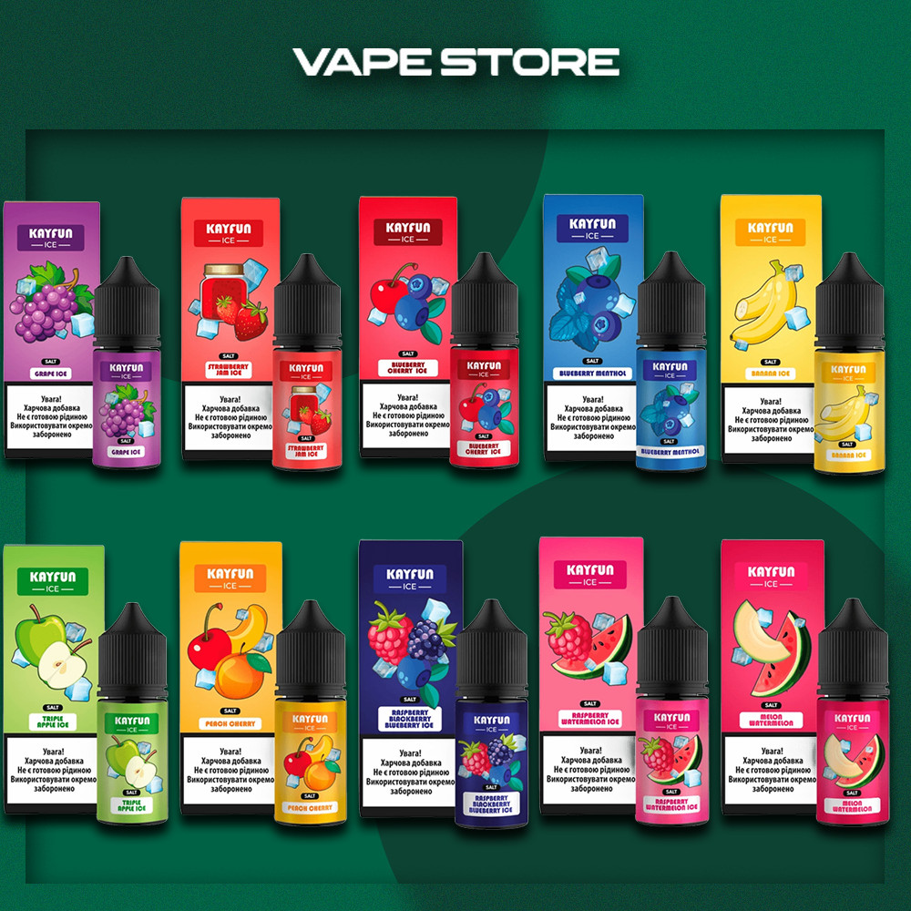 Солевая жижа представлена в 7 насыщенных фруктово-ледяных вкусах:
