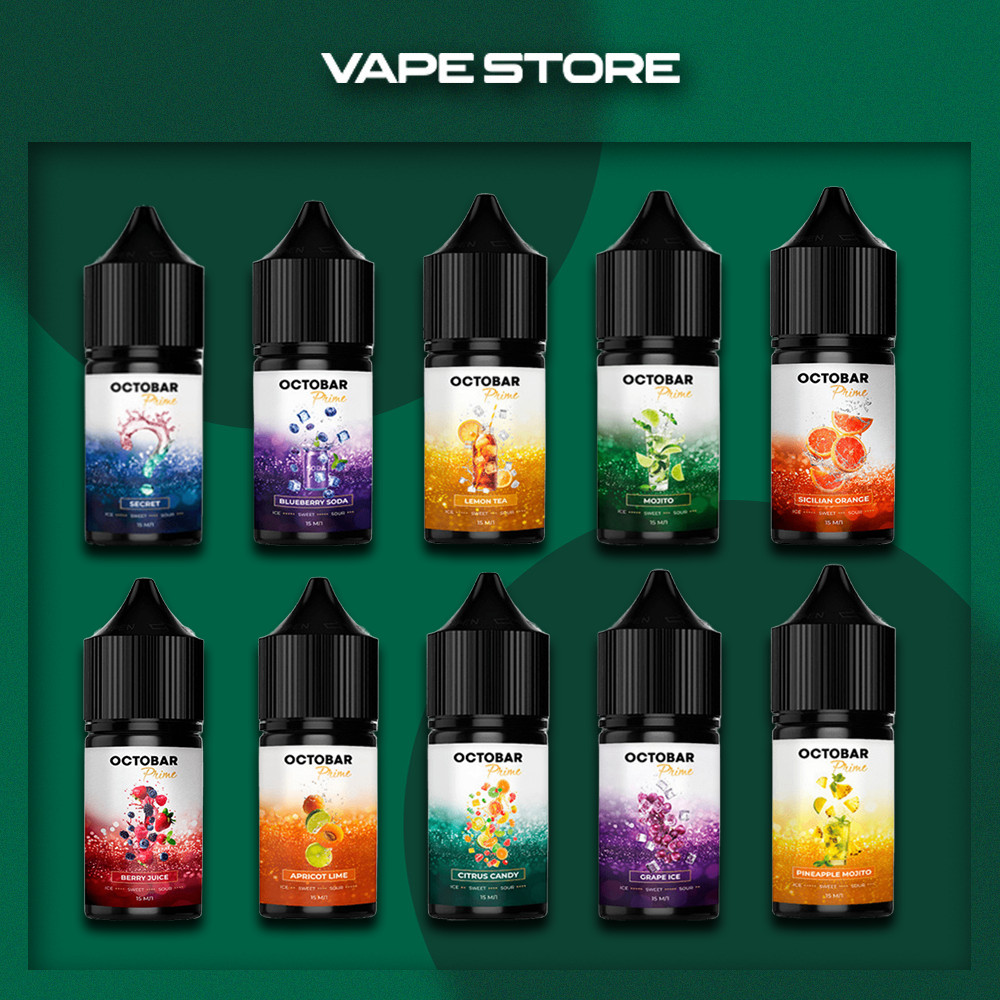 Жидкость предлагается в большом вкусовом разнообразии. Можно заказать Octobar Prime 30 мл со следующими ароматами: